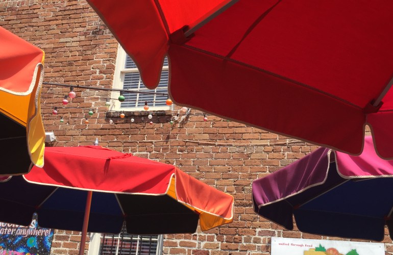 In need of a cool drink and some energy, I stopped in at The Coffee Fox for a simple iced coffee. I sat at their slick red bar, cooled down and did some people watching before heading to see Old Savannah Cotton Exchange building and the Savannah River views.